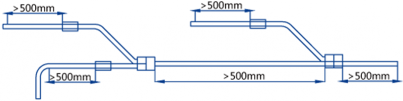 d.分歧管前后應(yīng)保證500mm的直管段長(zhǎng)度,且分歧管必須水平安裝,保證分流均勻;